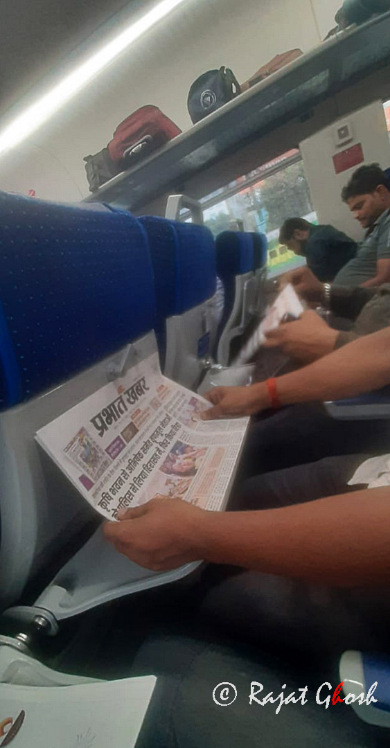 Finally the train started and we were handed the newspaper, ( which I think could have been done while we